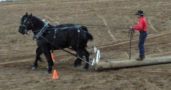 Another show of the strength of a team of draft horses was accomplished by connecting a team