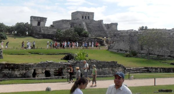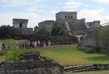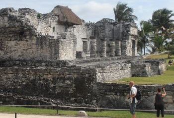 The most imposing structure is the castle, located on the east side, overlooking the whole village. Across from the castle is the Great Palace which seems small to be a palace. Several smaller buildings were temples for various gods. Sitting on the top of the bluff, overlooking the Caribbean Sea, is the Temple of the Wind God which seems appropriate since the wind blows from the sea over the temple. The castle is flanked with the Temple of the Descending God on the north side and another small temple on the south side. What seemed to be the smallest religious structure is the Temple of Frescos.