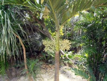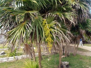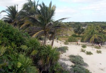 Palm trees Even though there were many flowering plants that provided a lot of color, the palm tree was the most numerous in the Tulum ruins.