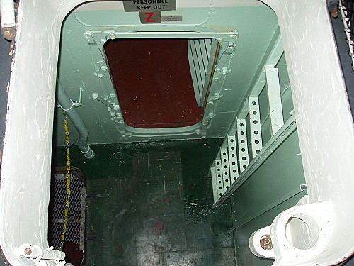 Looking down through a hatch to the engineering space below