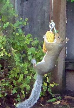 I placed a special squirrel feeding feature on the edge of the yard. An ear of