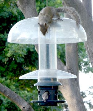 the bushy-tailed critters from getting into the birdseed. The squirrels often