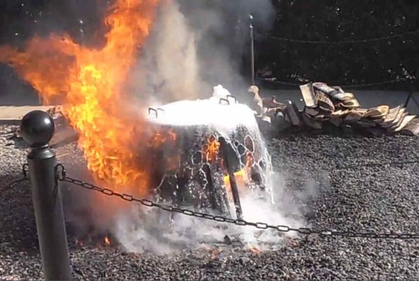 The fish-boil cauldron disappears in a ball of fire