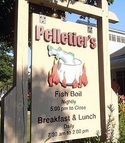 Upon entering the quaint little town of Fish Creek, we decided to walk around Founder's Square where a lot of historic buildings were located. There was one place that caught my eye because of a phrase I had never heard of before. The sign was in front of a restaurant named Pelletier's that offered something called a nightly "Fish Boil". I just thought it might be some special way fish was prepared in the restaurant kitchen. Once I saw that sign though, I started seeing other places that advertised that they had a "Fish Boil." This got me to wondering, “What the heck is a Fish Boil?”