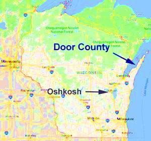 Lynn and I traveled by motorhome to Oshkosh, Wisconsin to attend a famous airshow that takes place every year — the EAA AirVenture. I had been wanting to see this particular airshow for many years. However, before going to Oshkosh, Lynn wanted to take me to Door County located north of Oshkosh. As it turned out, this would be one of many highlights of the trip leaving both of us with more wonderful memories.